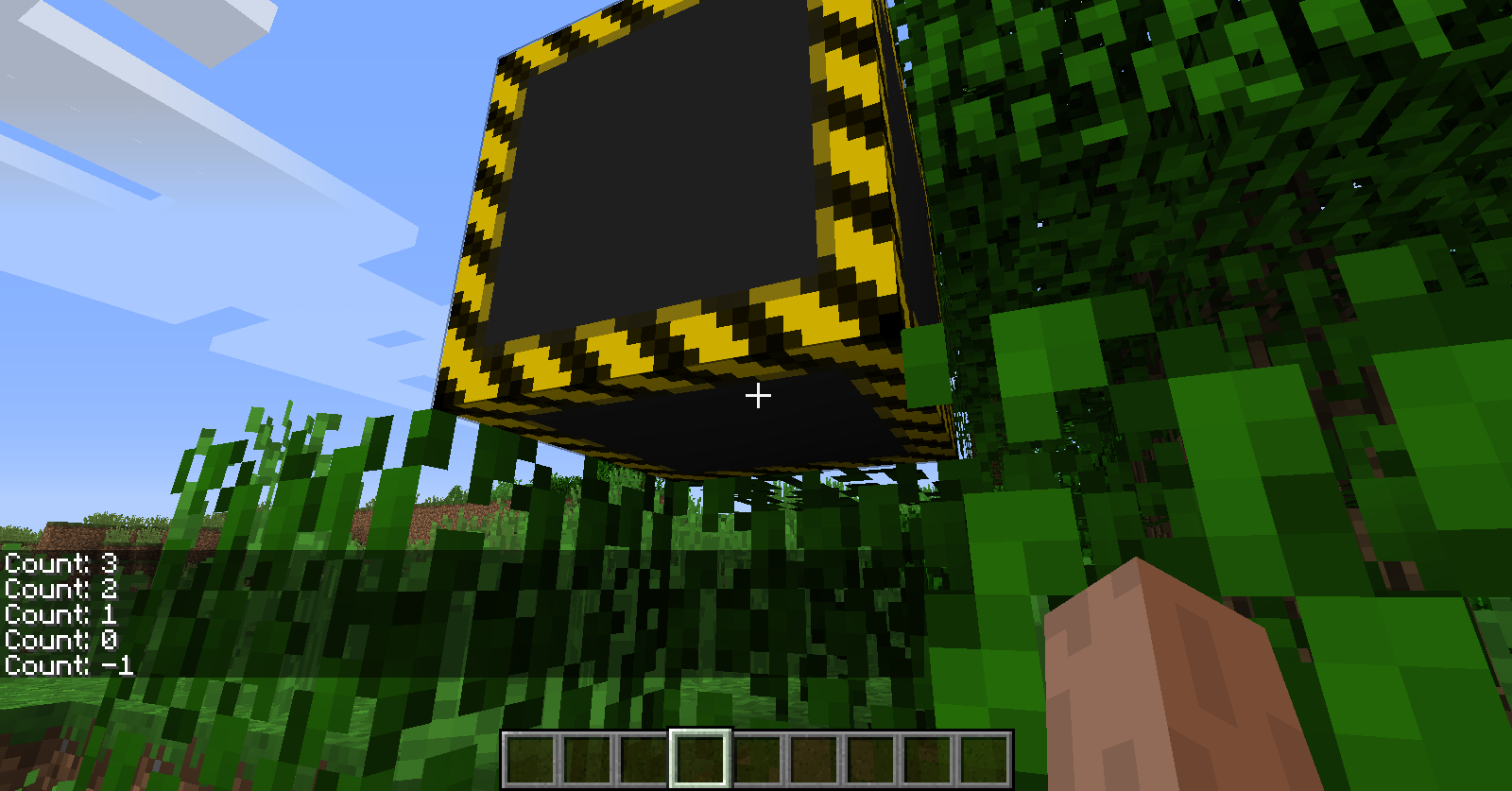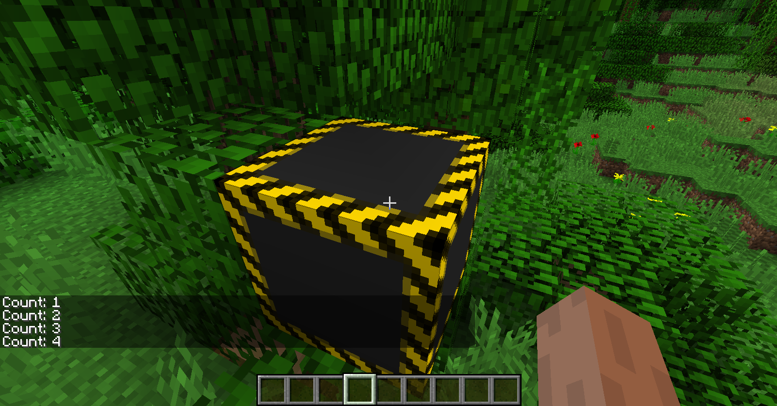 Теперь, когда все сделано, запускаем игру и достаем наш блок-счётчик из вкладки "блоки". Установив его, кликните ПКМ по верхней стороне блока - счётчик увеличит значение и в чате появится сообщение.
